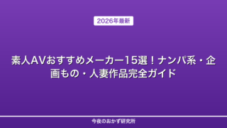 シリーズ解説 【2026年最新】素人AVおすすめメーカー15選!ナンパ系・企画もの・人妻作品完全ガイド 2026年最新の素人AVおすすめメーカーを徹底比較!ナンパ系、企画もの、リアル素人、人妻ジャンル別に人気メーカーの特徴と代表作品を詳しく解説します。 2026.03.05 シリーズ解説
